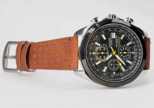 Hecho en Japón, resistente al agua, correa de cuero y movimiento cronógrafo